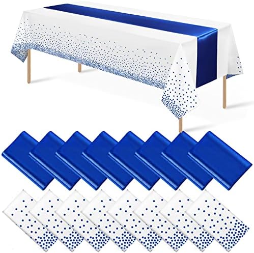 What you will get: the package includes 8 pcs white and blue confetti dot plastic tablecloth and 8 pcs blue satin table runner, specific color a...