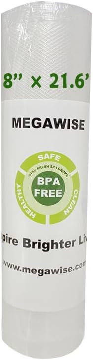 View full detailsMegawise Vacuum Sealer Bags, 8-Inch Wide x 21.6 Feet Long, Compatible with Megawise & Most Vacuum Sealers, Durable & BPA-Free Rolls for Food Storage
