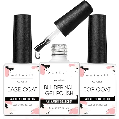 View full detailsMakartt 3Pcs Builder Nail Gel with Top and Base Coat, Clear Gel Builder Kit for Nails Apex Building Thickening Strengthener Extension Rhinestone in a Bottle, UV Light Lamp Required