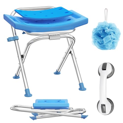 View full detailsFolding Shower Chair Seat, Height Adjustable Foldable Shower Stool for Inside Tub, 420lbs Portable Small Shower Chair for Travel, Heavy Duty Bath Chair Bench for Adults Elderly & Disabled