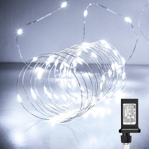 View full detailsFairy Lights Plug in, 99Feet 300LEDs Pure White String Lights, Waterproof Flexible Silver Wire Starry Lights for Bedroom Dorm Wedding Garland Wreath Wall Mason Jar Indoor Outdoor Christmas Tree