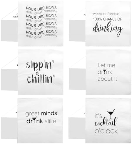 View full details96 Pcs Funny Cocktail Napkins 5'' x 5'' Funny Napkins 2 Ply Funny Cocktail Napkins for Adult,6 Different Quotes Bar Napkins for Wedding Birthday Anniversary Holiday Party(Black Font)