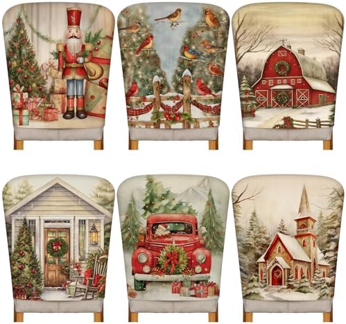 View full detailsMoukeren 6 Pcs Christmas Chair Cover Set Stretch Dining Chair Back Covers Christmas Nutcracker Red Truck Slipcovers Farmhouse Removable Elastic Seat Protector for Xmas Party Dining Home Kitchen Decor