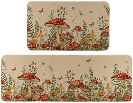 View full detailsMushroom Snail Kitchen Rugs Set of 2, Spring Summer Home Decor Low-Profile Kitchen Mats for Floor - 17x29 and 17x47 Inch