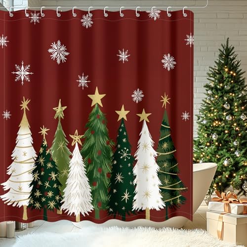 View full detailsMerry Christmas Shower Curtain, Christmas Tree Snowflake Xmas New Year Holiday Winter Decor Red Bathroom Curtain Set - 72x72 Inch Waterproof Polyester Fabric with Hooks