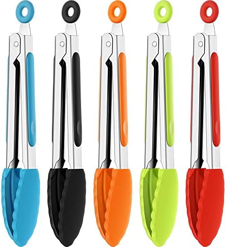 View full detailsMudder 5 Pcs Mini Silicone Tongs 7 Inch Small Serving Kitchen Tongs with Silicone Tips Christmas Party Supplies for Salad, Grilling, Frying and Cooking(Multi)
