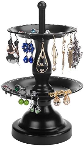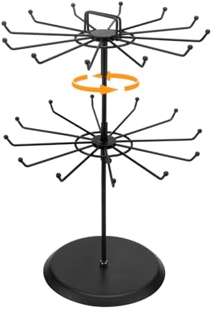 View full detailsMyGift 2 Tier Black Metal Rotating Necklace and Bracelet Organizer Jewelry Stand with 24 Hooks, Multipurpose Accessory and Keychain Spinning Display Rack with Top Handle Card Holder