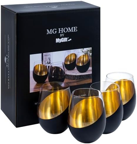 View full detailsMyGift Black and Gold Stemless Wine Glasses Set of 4 - Elegant Christmas Gift Set with Luxe Metallic Finish, 18oz Modern Barware