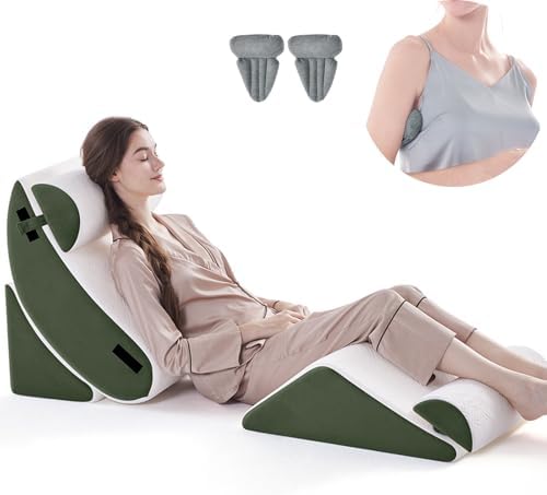 View full detailsWedge Pillow Set for After Surgery, 5 PCS Bed Wedge Pillow for Sleeping, Memory Foam Orthopedic Back Adjustable Pillow for Pain Relief and Acid Reflux with 2 PCS Axilla Pillow Green