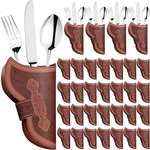 View full detailsCowboy Holster Silverware Holders Cardstock Western Party Tableware Supplies Cutlery Sleeve Knife and Fork Holder Vintage Utensil Holders for Western Rodeo Party Favors(60 Pcs)