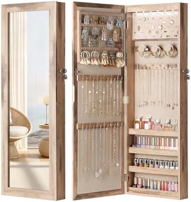 View full detailsNicetree 6 LEDs Mirror Jewelry Cabinet, Large Capacity Lockable Jewelry Armoire Organizer, Door or Wall Mounted Mirror with Jewelry Storage,Toasted Oak