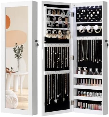 View full detailsNicetree 6 LEDs Mirror Jewelry Cabinet, Large Capacity Lockable Jewelry Armoire Organizer, Door or Wall Mounted Mirror with Jewelry Storage, Christmas Gifts, White