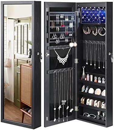 View full detailsNicetree 6 LEDs Mirror with Jewelry Storage, Over Door Jewelry Armoire with Mirror, Full Length Mirror Jewelry Cabinet, Wall Mounted Jewelry Organizer Box, Black