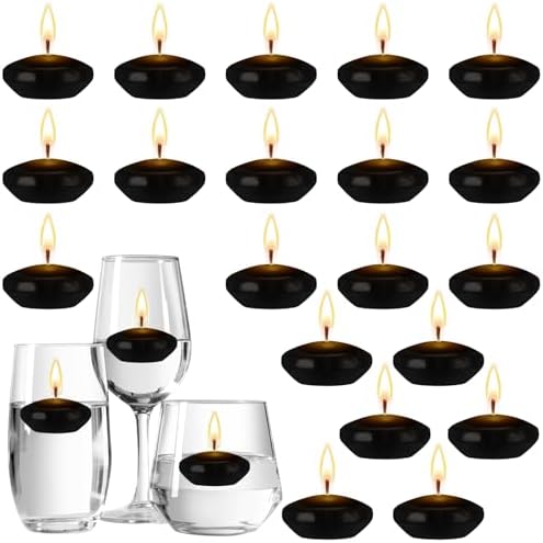 View full detailsNuanchu 20 Pcs Halloween Black Floating Candles Centerpieces for Wedding 1.5 Inch Small Unscented Floating Candles Decoration for Wedding Party Thanksgiving Christmas Holiday and Home Pool Decor