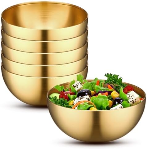 View full detailsNuogo 6 Pack Stainless Steel Gold Mixing Bowls Gold Esthetician Bowls for Wedding Party Facial Cereal Rice Noddle Snack Fruit Cereal Snack Appetizer Cooking Baking Serving(5.9 Inches)