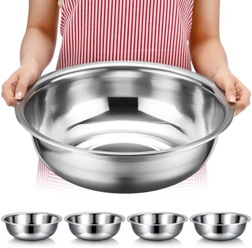 View full detailsNuogo 4 Pcs Stainless Steel Mixing Bowls Metal Mixing Bowls Extra Large Basin Salad Basin Deeper Edge Dishwasher Safe Mirror Finish for Home and Commercial, Silver (13 Inch 8 Qt)