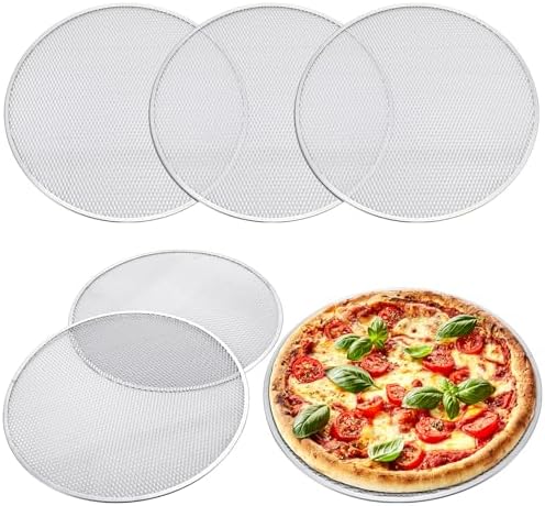 View full detailsNuogo 5 Pcs 16 Inch Pizza Pan with Holes Aluminum Mesh pizza Screen Seamless Round Tray for Oven Nonstick Baking Sheet for Kitchen Bakery Restaurant BBQ Party Cookware Supplies