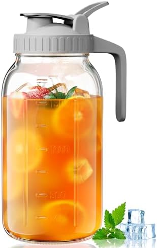 View full detailsOneDream Glass Pitcher with Lid, 64 oz Large Mason Jar Wide Mouth, Sun Tea Glass Jar for Outside, Iced Tea Pitcher for Cold Beverages, Breast Milk, and Home Entertaining