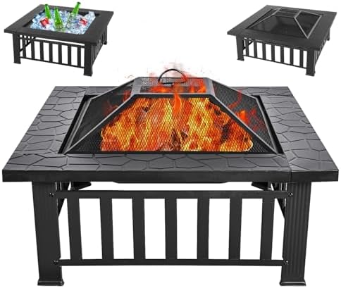 View full detailsMultifunctional Fire Pit Table 32 inch Square Metal Firepit Stove Backyard Patio Garden Fireplace for Camping, Outdoor Heating, Bonfire and Picnic