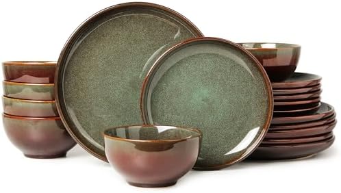 View full detailsStoneware Dinnerware Sets for 6, 18 Pieces Ceramic Plates and Bowls Sets, Chip and Scratch Resistant Dish Set, Dishwasher & Microwave Safe Plate Set, Brown Green