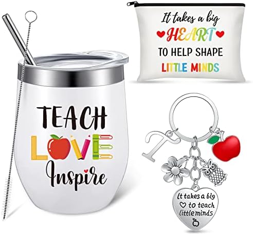 View full details3 Pieces Teacher Appreciation Gift 12 oz Teach Love Inspire Wine Tumbler It Takes a Big Heart To Help Shape Little Minds Cosmetic Bag and Teacher Keychain for Christmas Birthday (Letter T Style)
