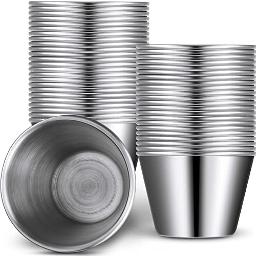 View full details100 Pieces 1.5 oz Metal Ramekins Dipping Sauce Cups Stainless Steel Condiment Cups Small Metal Ramekins for Kitchen Restaurant Camping BBQ Party Seafood