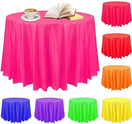 View full detailsPreboun 8 Pack Neon Party Plastic Tablecloth Disposable 84 Inch Round Table Cover Decorative Large Assorted Color Tablecloth Circle Table Cover for Party Wedding Birthday Decorations (Bright Color)