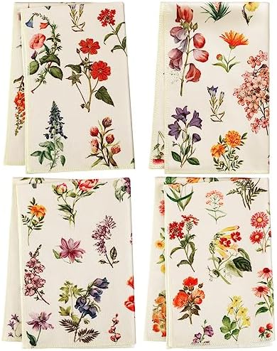 View full detailsPreboun Set of 4 Vintage Wildflower Dish Towels for Kitchen Decorative 16 x 24 Inch Floral Kitchen Towels Hand Floral Bath Towels Dish Cloth for Cooking Tea Bathroom Woman Guest Housewarming Gift