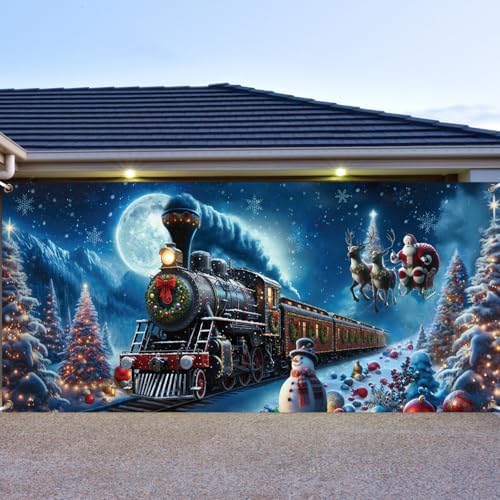View full detailsPreboun Christmas Polar Believe Garage Door Decoration 7 x 16 ft Vintage Believe Train Garage Door Banner Cover Polar Santa Garage Backdrop for Xmas Eve Holiday Outdoor Wall Decor