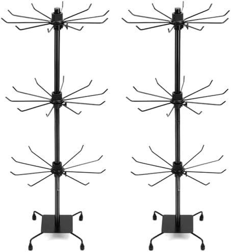 View full detailsQWORK Rotating Jewelry Display Stand with Hooks, 2 Pack Black 3 Tiers Metal Adjustable Height Holders for Necklace, Earrings, Key Rings