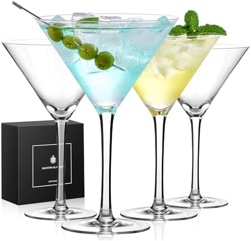 View full detailsMartini Glasses Set of 4, 9 oz Crystal Cocktail Glasses, Hand Blown Crystal Martini Glasses for Espresso Martini, Cosmopolitan, Gimlet, Home Bar, Party, Martini Glassware Gift Set (Stem)