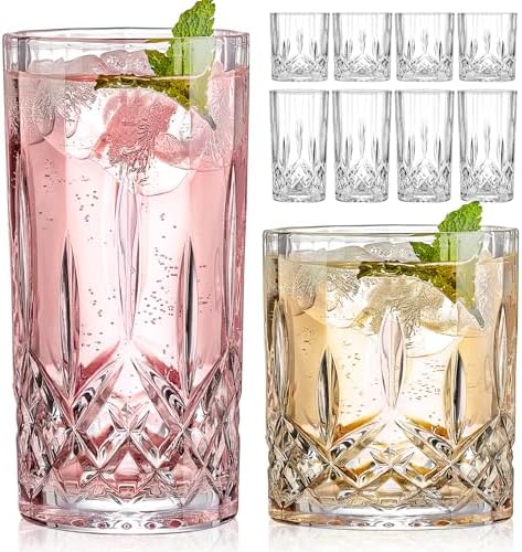 View full detailsDrinking Glasses, 8 Piece Crystal Glass Cups, Mixed Glassware Set, 4 pcs Crystal Old Fashioned 11oz Highballs and 4 pcs 11oz Whiskey Glasses, Great for Cocktail, Whisky and other Beverages