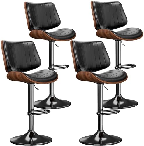 View full detailsSwivel Bar Stools Set of 4, Adjustable Bentwood Barstools for Kitchen Counter, Modern PU Leather Upholstered Bar Chair with Back and Footrest, for Kitchen Island, Bar, Dining Room, Black