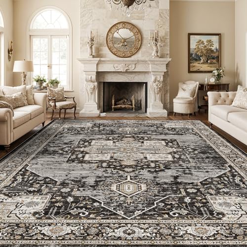 View full detailsRUUGME Washable 10x14 Area Rug - Soft Area Rugs for Living Room Stain Resistant Carpet Vintage Lightweight Rugs for Bedroom with Non Slip Backing Indoor Ultra-Thin Rugs Home Decor 10x14 Black