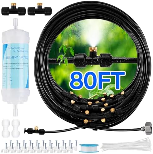 View full detailsMisters for Outside Patio with Water Filter - 80Ft(24.5M) Misting System Line 30 Brass Mist Nozzles Brass Adapter(3/4") Patio Misters for Cooling Outdoor Greenhouse Backyard Porch Garden Party Pool