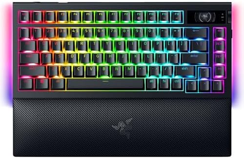 View full detailsRazer BlackWidow V4 Pro 75% Wireless Gaming Keyboard: OLED Display - True 4K Hz Wireless - Bluetooth - Hot Swappable - Orange Tactile Switches - Command Dial Snap Tap - Chroma RGB - Wrist Rest