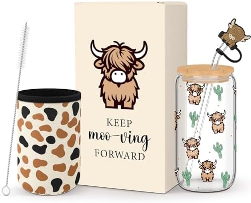 View full detailsHighland Cow Lovers Coffee Cup Gifts with Straw Stopper and Sleeve, 16 oz Aesthetic Iced Coffee Cup Gifts Box for Cow Lovers Birthday Christmas