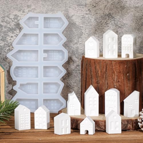 View full detailsReallnaive Mini Christmas Village House Silicone Mold Set 12 DIY Small Non Stick House Casting Crafts Soap Making Mold for Xmas Home Table Decoration Indoor