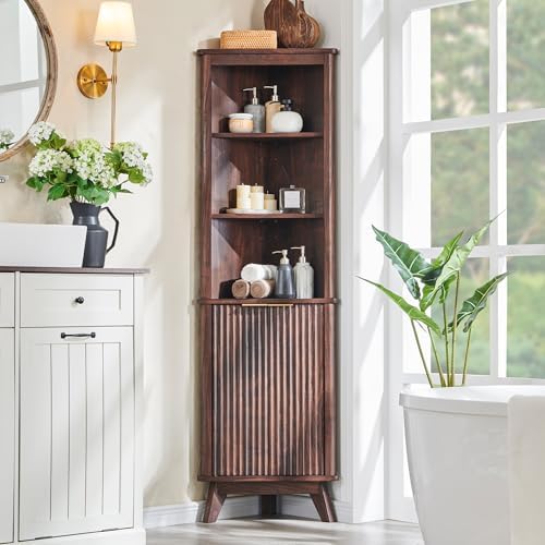 View full detailsRedLemon 68" Tall Corner Cabinet, Modern Fluted Storage Cabinet with Adjustable Shelves, Curved Profile Design, Space Saver for Bathroom, Living Room, Kitchen, Walnut