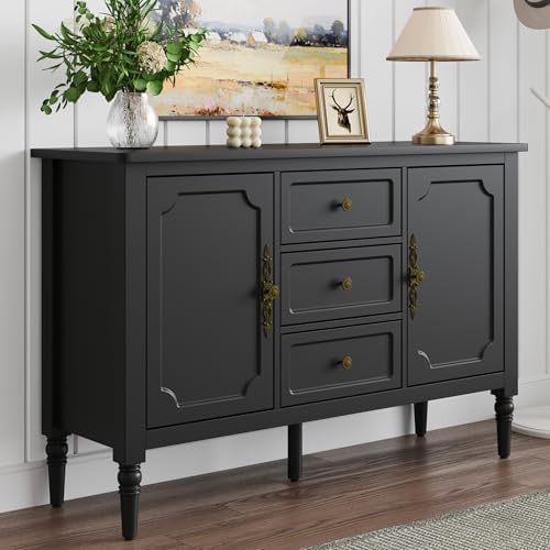 View full detailsRoyalCraft Storage Cabinet with 2 Doors & 3 Drawers, Mid-Century Sideboard Cabinet with Adjustable Shelves, Wood Buffet Cabinet with Turned Legs, Ideal for Entryway, Living Room, Dining Room, Black