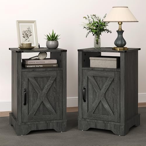 View full detailsRoyalCraft Nightstand Set of 2, Grey End Table with Charging Station, Tall Farmhouse Bedside Table with Large Storage and Shelf, Wooden Side Table with for Bedroom, Home Office, Dark Grey