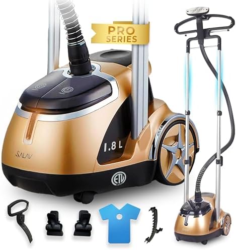 View full detailsSALAV® Professional Standing Garment Steamer with Retractable Power Cord, Foot Pedal Control, Wheels for Easier Movement (Gold)