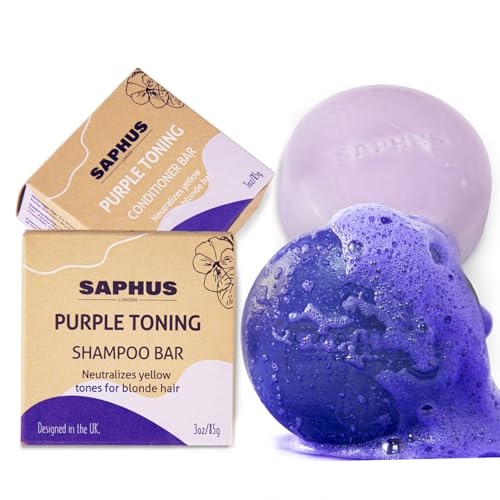 Sulfate Free Brass Toning Purple Shampoo Bar and Conditioner Set for Blonde, Bleached, Silver, or Brown Hair, Neutralizes Brassy Yellow Orange Tones, 6 oz