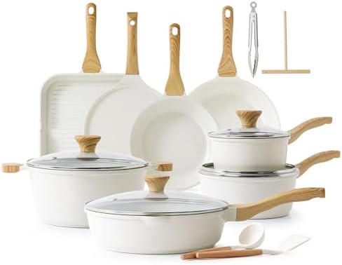 View full detailsSENSARTE Nonstick Ceramic Cookware Set 23-Piece, Healthy Pots and Pans Set, Non-toxic Kitchen Cooking Set with Stay-Cool Handles, Silicone Utensils and Pot Protectors, PFAS & PFOA Free
