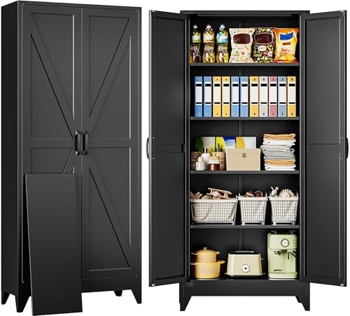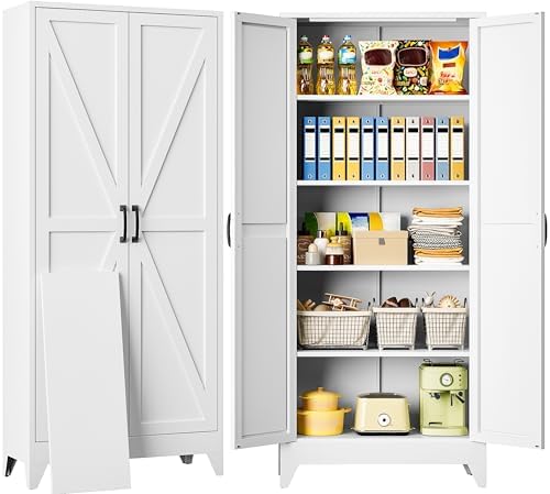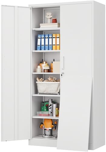 View full detailsWide & Deep Metal Storage Cabinet with 2 Doors and 5 Adjustable Shelves,White Locking Metal Cabinet,Large Garage Storage Cabinets,Lockable Tall Pantry Cabinets for Home,Office,Garage,Shop 72x36x18