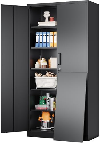 View full detailsMetal Storage Cabinet with 2 Doors and 6 Shelves,Black Metal Cabinet with Lock,71" Lockable Garage Storage Cabinets,Locking File Cabinet,Steel Tool Cabinets for Home,Office,Garage,Shop,School