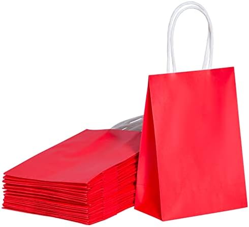 View full detailsSUNCOLOR 25 Pack Small Red Gift Bags with Handles – 6" Recyclable Paper Goodie Bags for Party Favors, Kids Birthday, Weddings, Christmas, Valentine’s Day