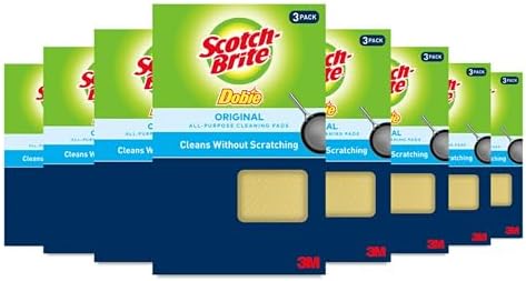 View full detailsScotch-Brite Dobie Pads, Dobie Sponge for All Purpose Cleaning of Kitchen, Bathroom, and Household, Non Scratch Dobie Cleaning Pads Safe for Non-Stick Cookware, 3 Count (Pack of 8) total 24 Dobie Pads