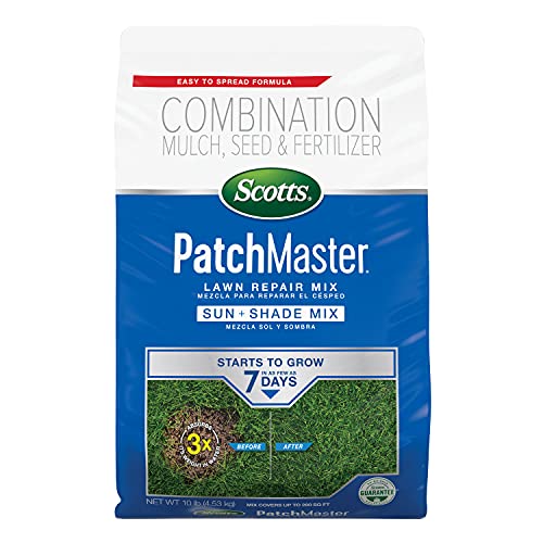 View full detailsScotts PatchMaster Lawn Repair Mix Sun + Shade Mix, Combination Grass Seed, Fertilizer, and Mulch, 4.75 lbs.