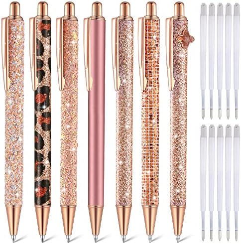 View full detailsSherr 7 Pcs Fancy Pens for Women Cute Sparkly Glitter Pens with 10 Pcs Black Ink Refills Pretty Gifts for Girls Office School Christmas Graduation(Rose Gold,Elegant)